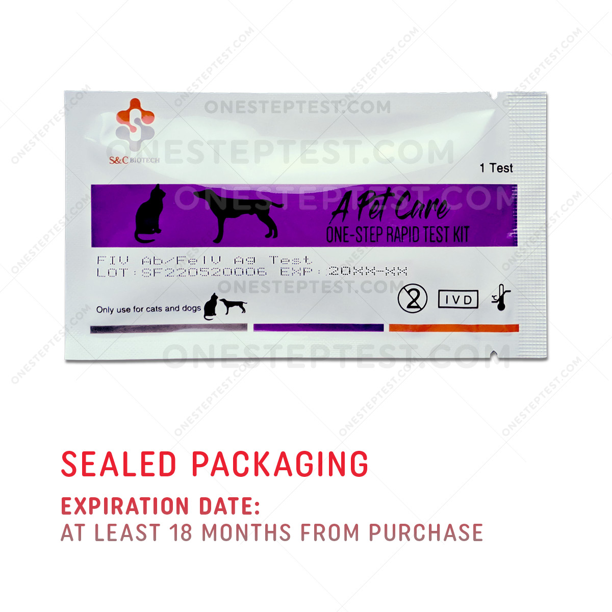 A-PET-CARE One Step FeLV+FIV test for dogs includes one cassette with 2 testing strips (FeLV + FIV).