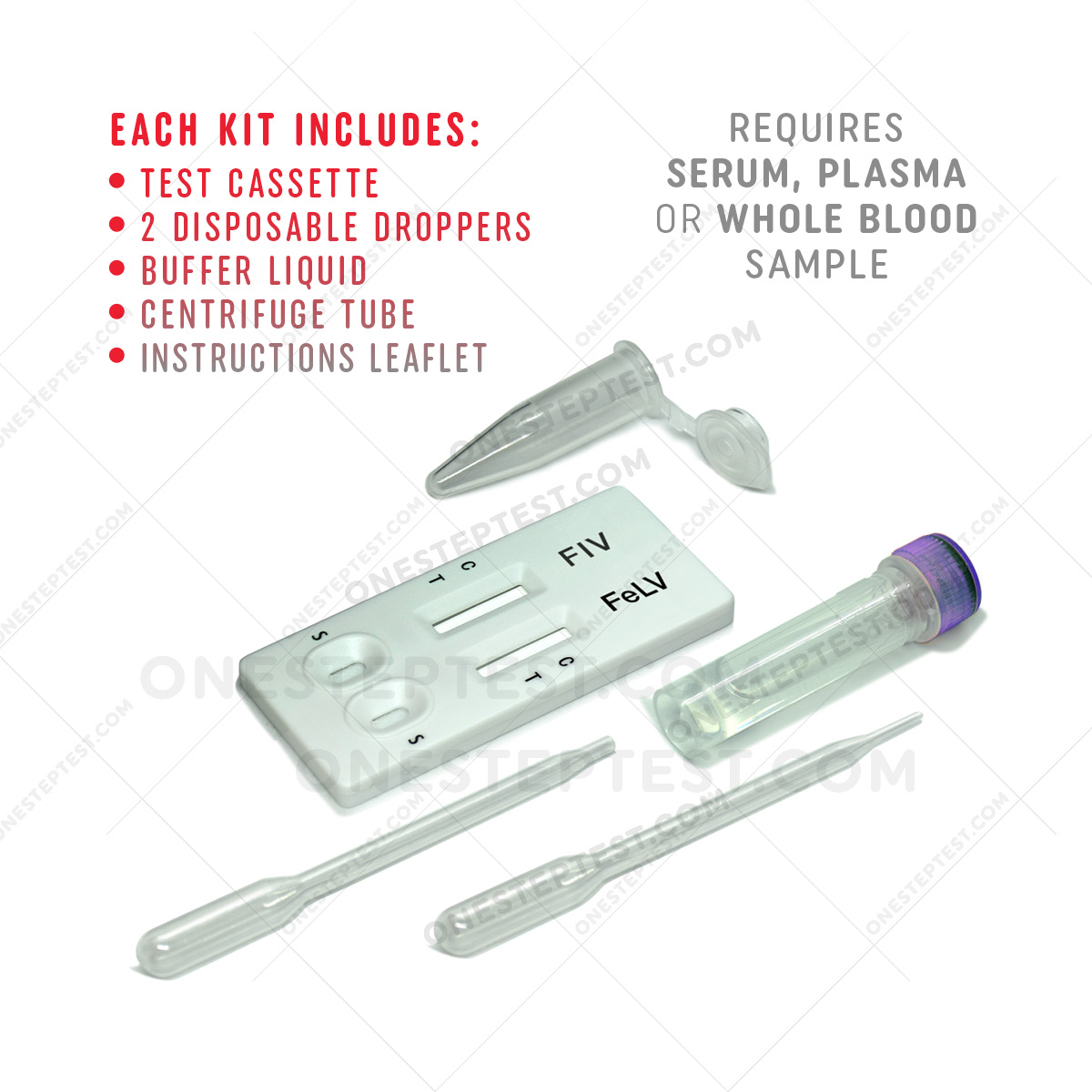This at-home Feline Immunodeficiency Virus & Feline Leukemia testing kit does NOT include any blood collection equipment (syringes are NOT included).